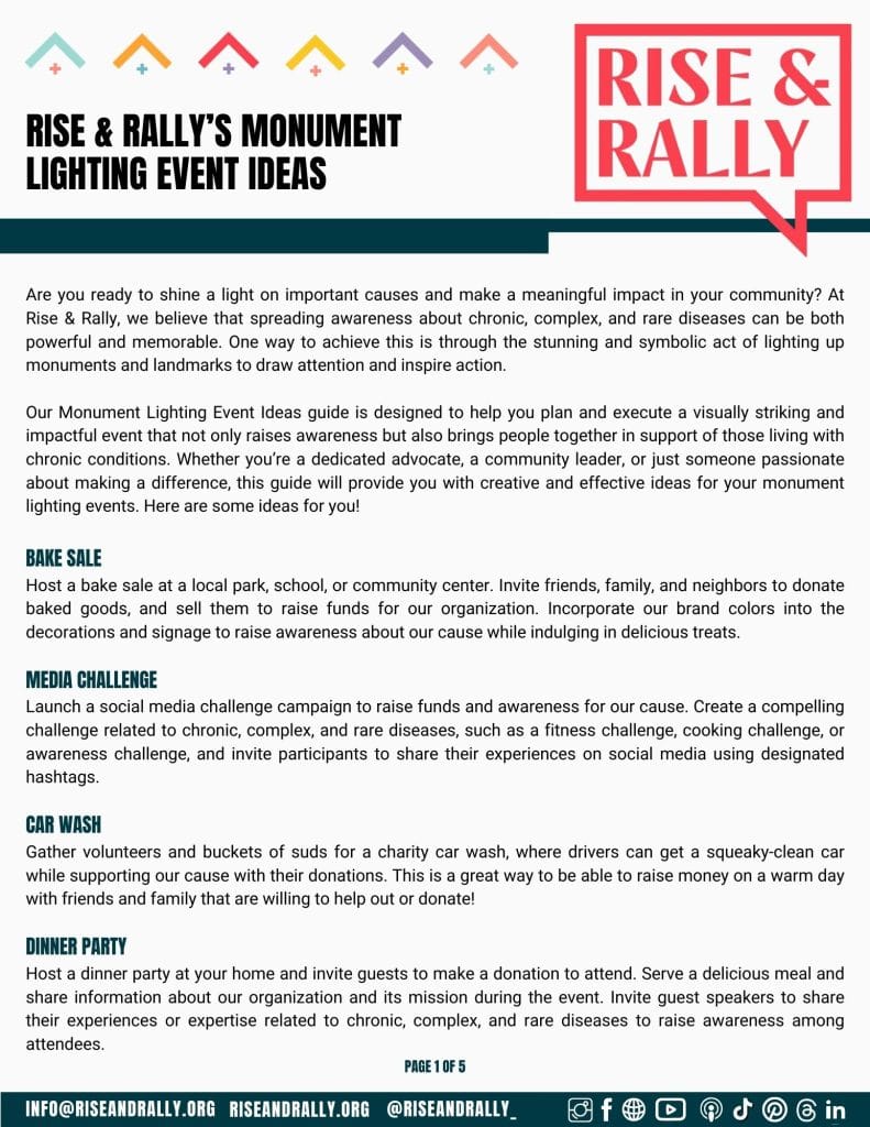 - A lighting to raise awareness about the issues and causes we advocate for at Rise & Rally on chronic, complex, and rare disease advocacy and healthcare reform