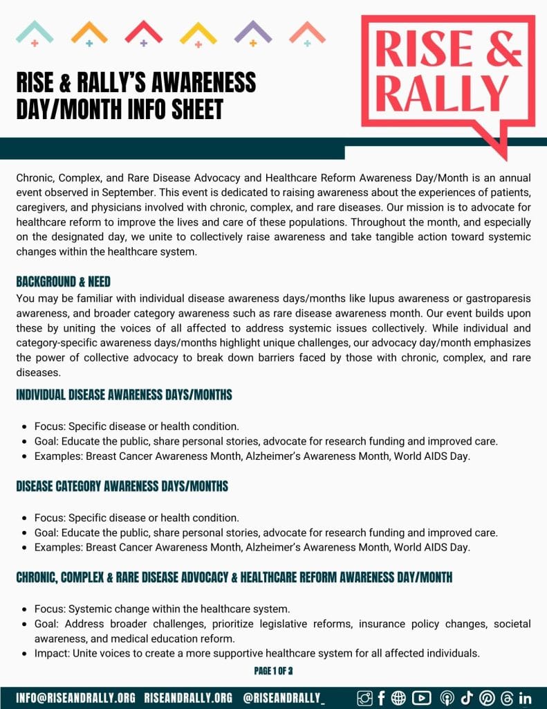 Raising awareness is a vital aspect of advocating for change and addressing the challenges faced by individuals with chronic, complex, or rare diseases. It’s a way to educate others, spark conversations, and ultimately drive progress towards improved support and resources.